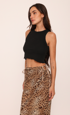 Our beautiful Claire Cover Up is a maxi skirt made with our very soft french lace fabric. The Claire in leopard is a soft poly/rayon blend. Ties at the side and cinches in for a completely adjustable and flattering fit. Pack it away in your honeymoon suitcase for the perfect beach coverup.