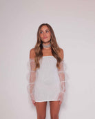 The perfect pairing to our revenge Mini Dress, our Ruffles Sleeves are full sleeve and made of soft, lightweight tulle with soft stretch elastic bands. Adjust it to the perfect length and poofiness for you!