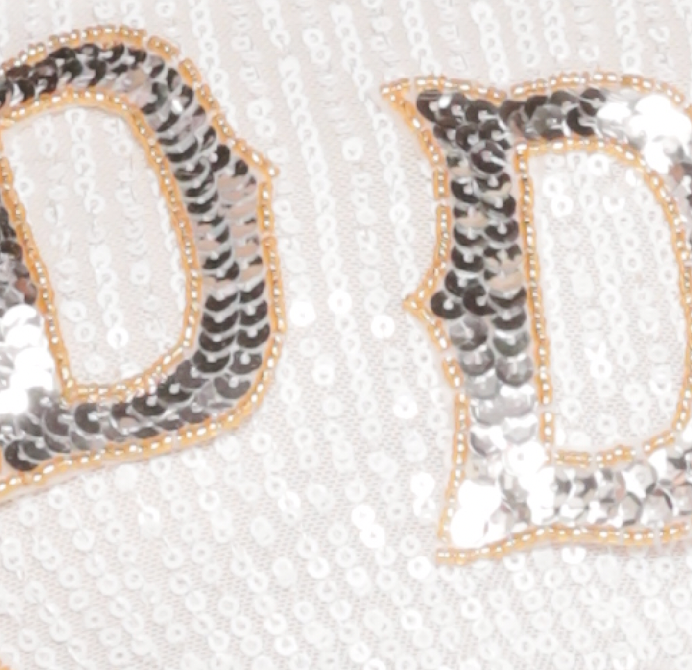 Made with our stretchy, soft on the skin sequin knit and hand applied sequin lettering and star appliques. Wide, 3-button adjustable straps that can be styled 3 different ways: normal 2 straps, criss cross in the back, and as a halter.