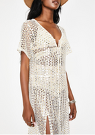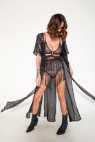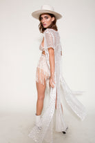 Our Kokomo Duster is made with our surprisingly soft, woven knit sequin embroidered fabric. Flowy, breezy, and super versatile. Wear it with our Verona Bra and Vienna Bottoms set in Mirror, take it poolside for the perfect coverup, or pair it with your favorite tee and jeans.
