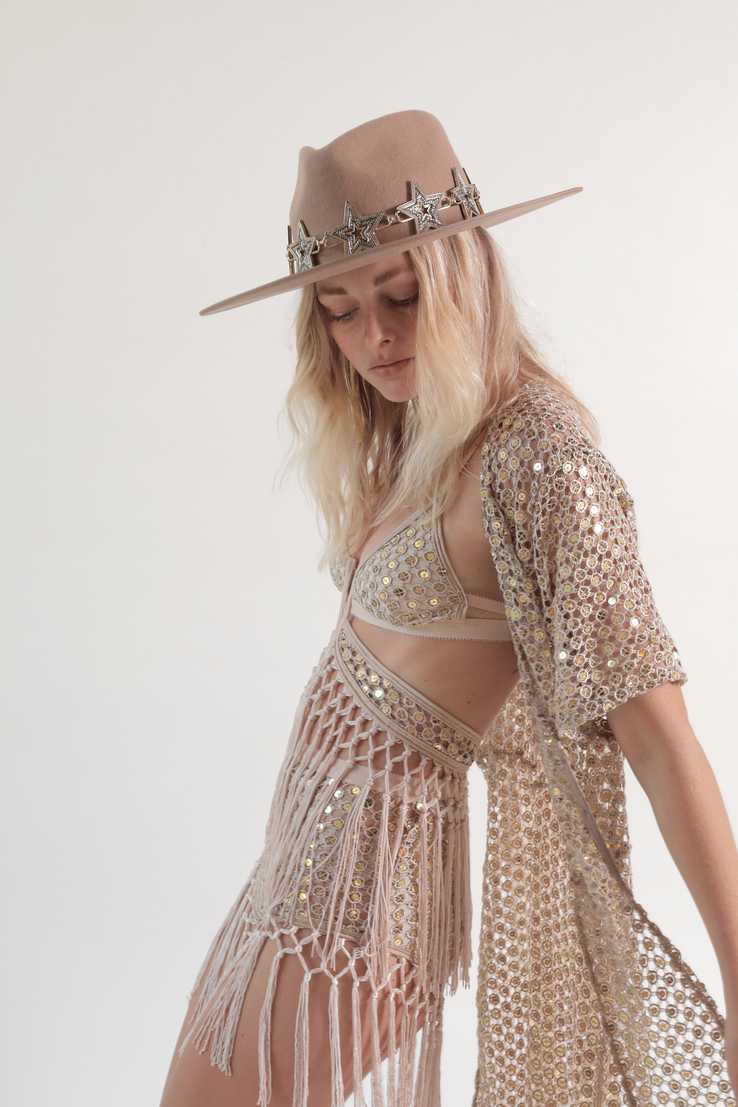 Shown with Verona Bra and Vienna Bottoms set in Mirror, Plain Wide Brim Hat, Ashley Hat Chain
