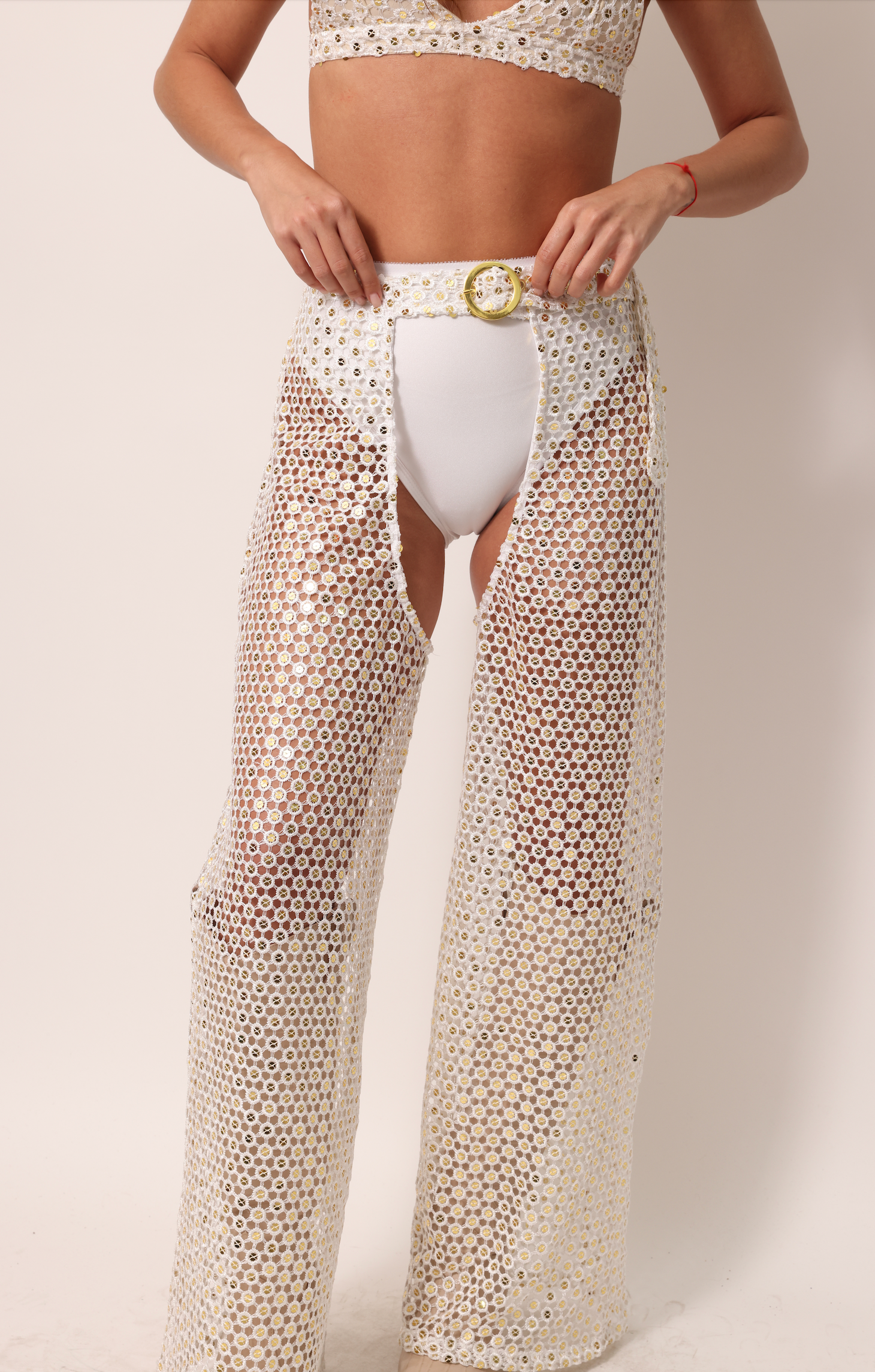 Our beloved chaps now available in our mirrored sequin. These feel soft and barely there. Light stretch for comfort. Adjustable at the waist and the backside waist band has a bit of extra stretch for the perfect fit. Go ahead and show off those ASSets.