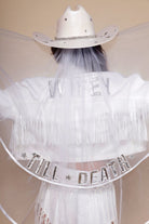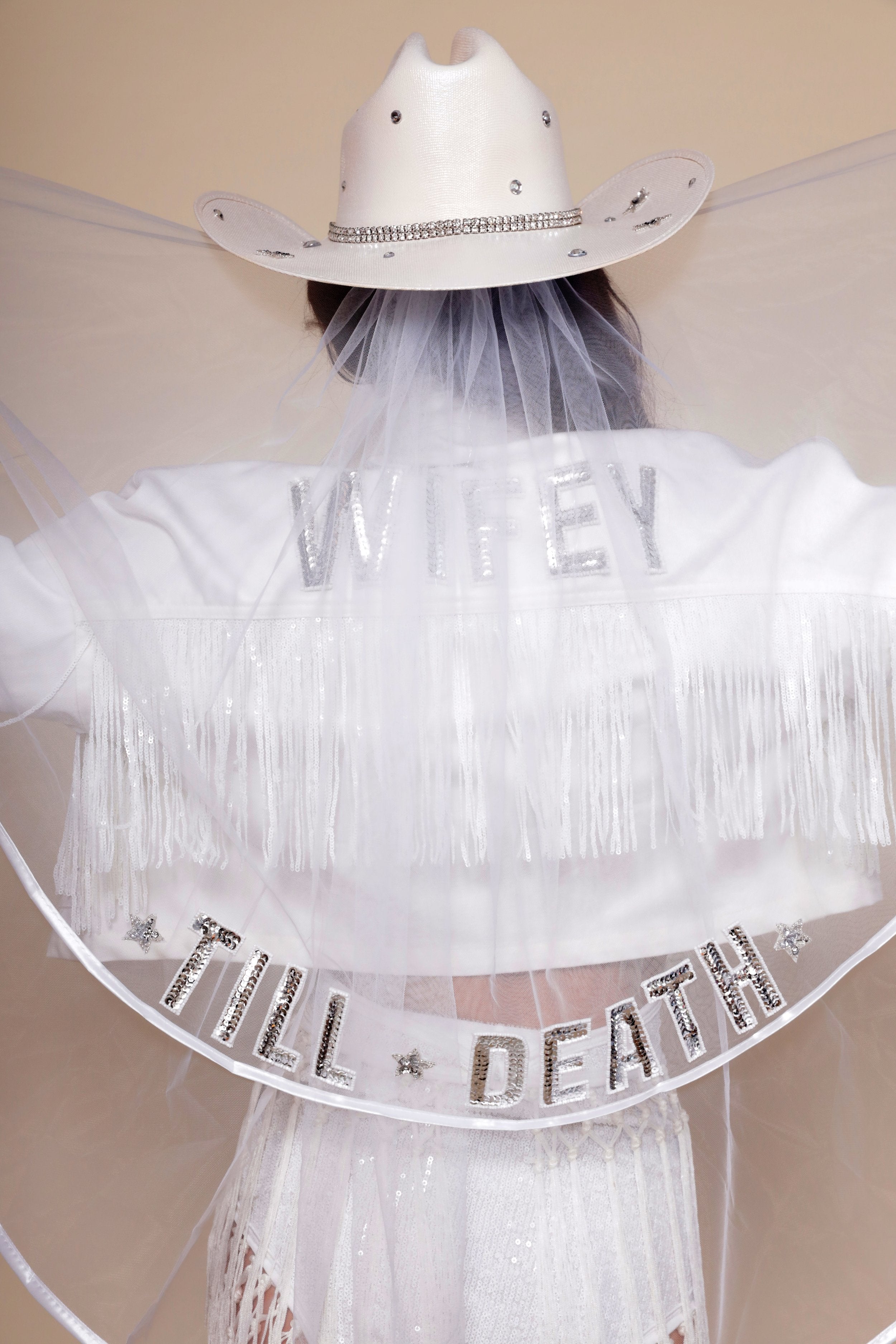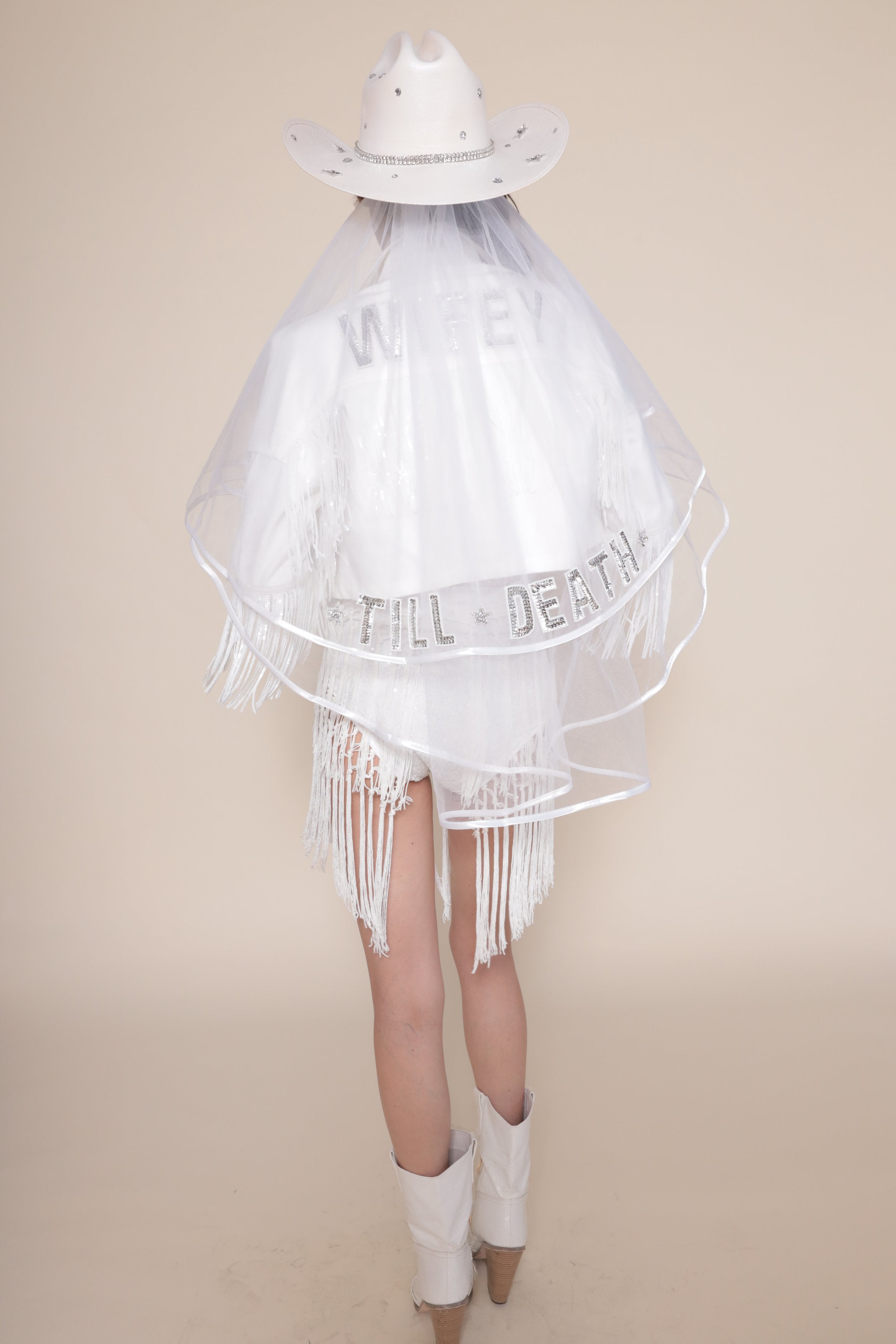 Because just any veil won't do. Our handmade, made-to-order Custom Veil is made with tulle and hand applied sequin lettering. Trimmed with satin ribbon and with your choice of headband.