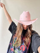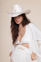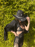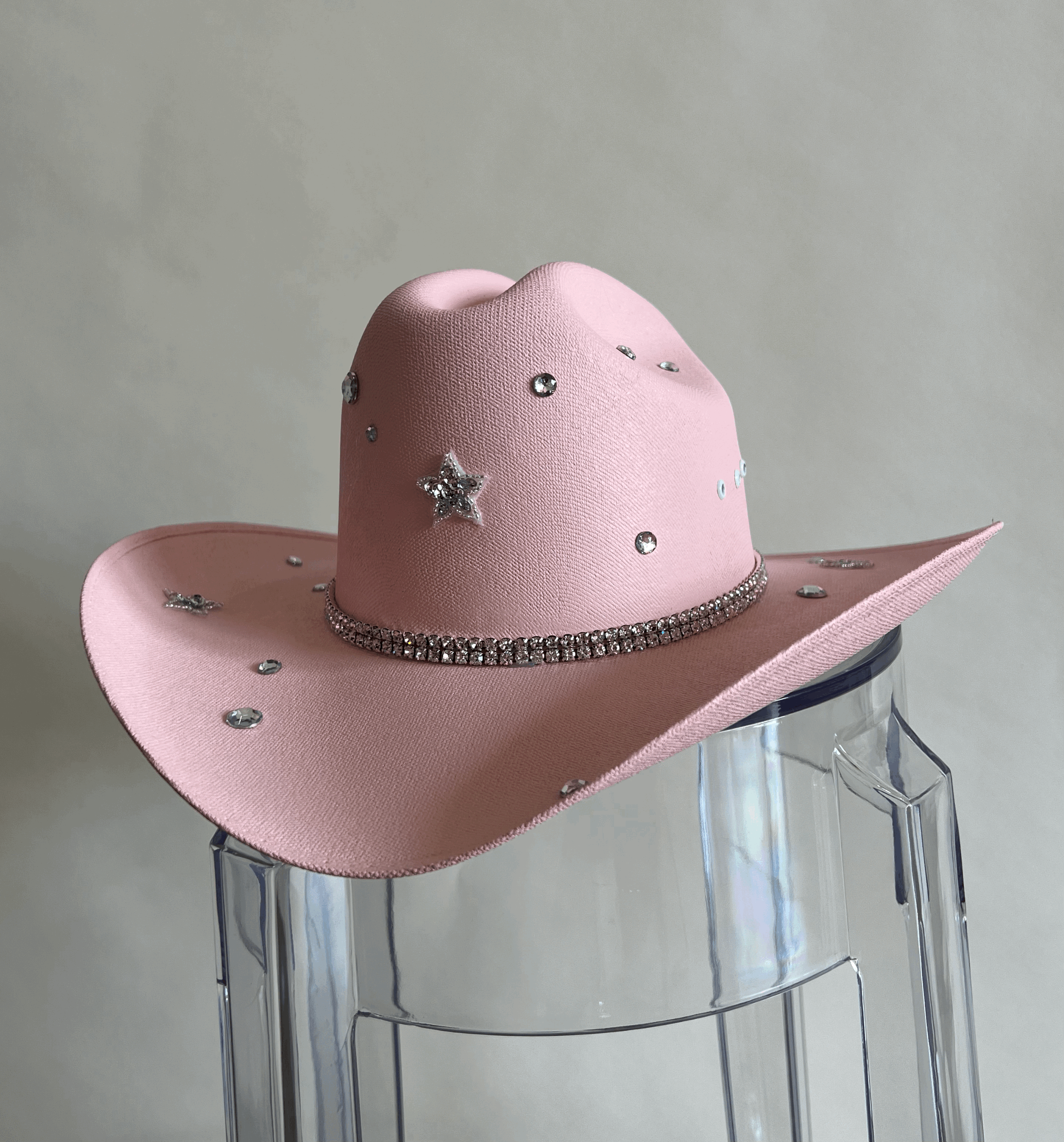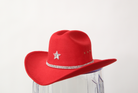 Our most popular cowboy hat and for good reason. Our Starry Night Cowboy Hat is made of wool felt and has hand applied sequin stars and crystal gems. Elastic inserts inluded for complete sizing adjustability.