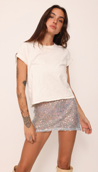 Our Ultra Mini Skirt in our ultra comfy sequin net fabric for those days when you need an ultra hot skirt or cover up. Hugs the body like a knit sweater with just enough stretch for comfort. Super flattering and wearable. Pair with our matching Criss Cross Top or Twisted Top. Or, take it to the beach for the perfect coverup.
