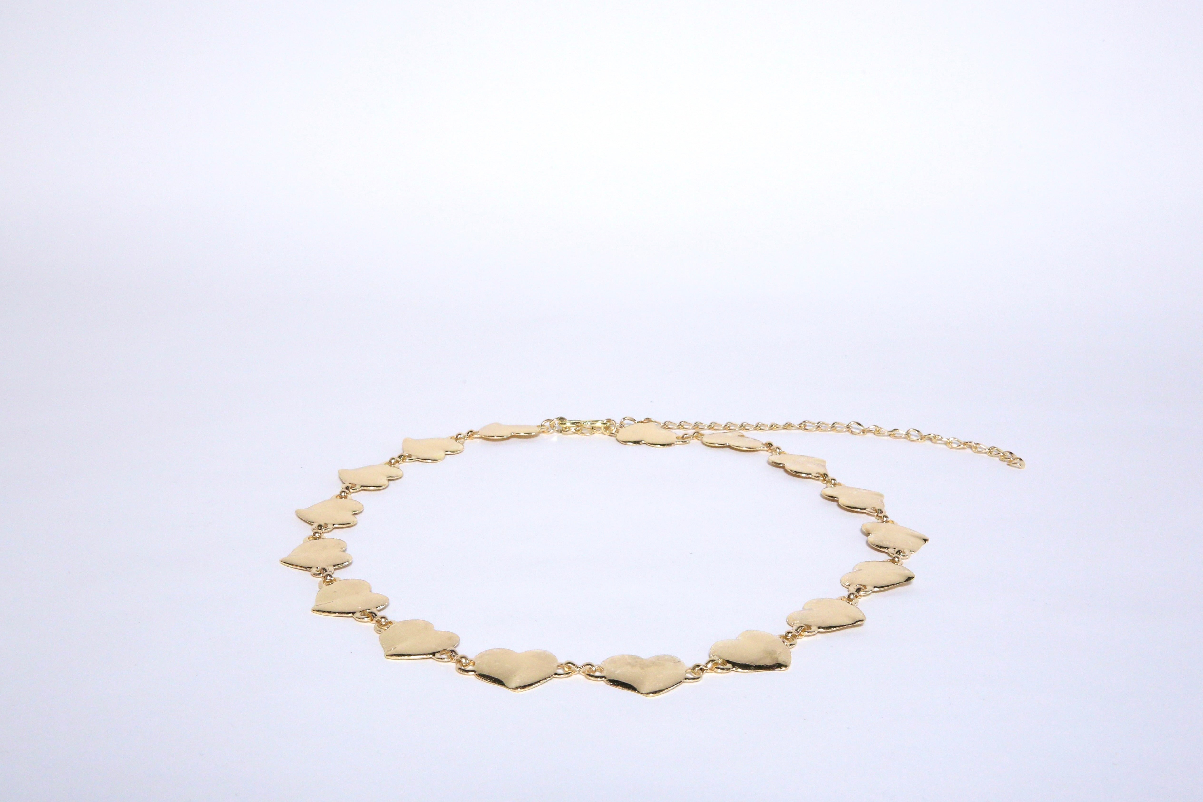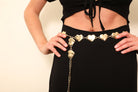 Long adjustable chain Belt with a heart closure detail. Gold tone. All products are lead and nickel free.