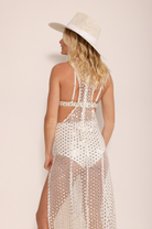 A Sequin midi Dress with deep plunging X shaped neck line- perfect to be worn over our triangle disco bra!