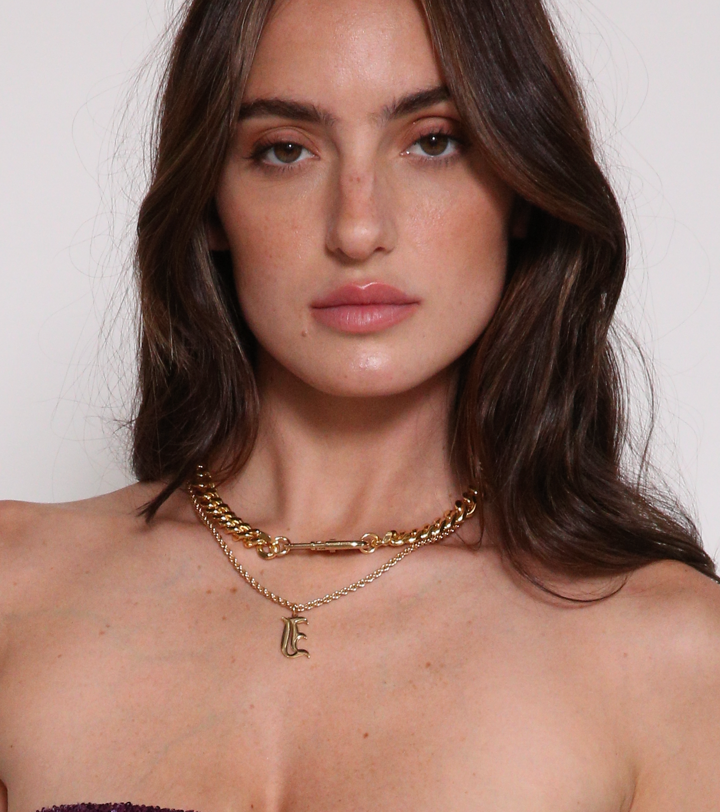 The CD Chain Necklace is 18k gold plated over stainless steel curb chain.