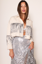 Metal Buttons, Pockets, Collar, Sequin fringe trim