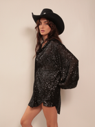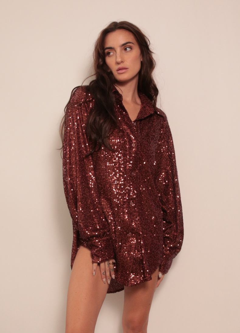 Risky Business Button Down in Solid Sequin