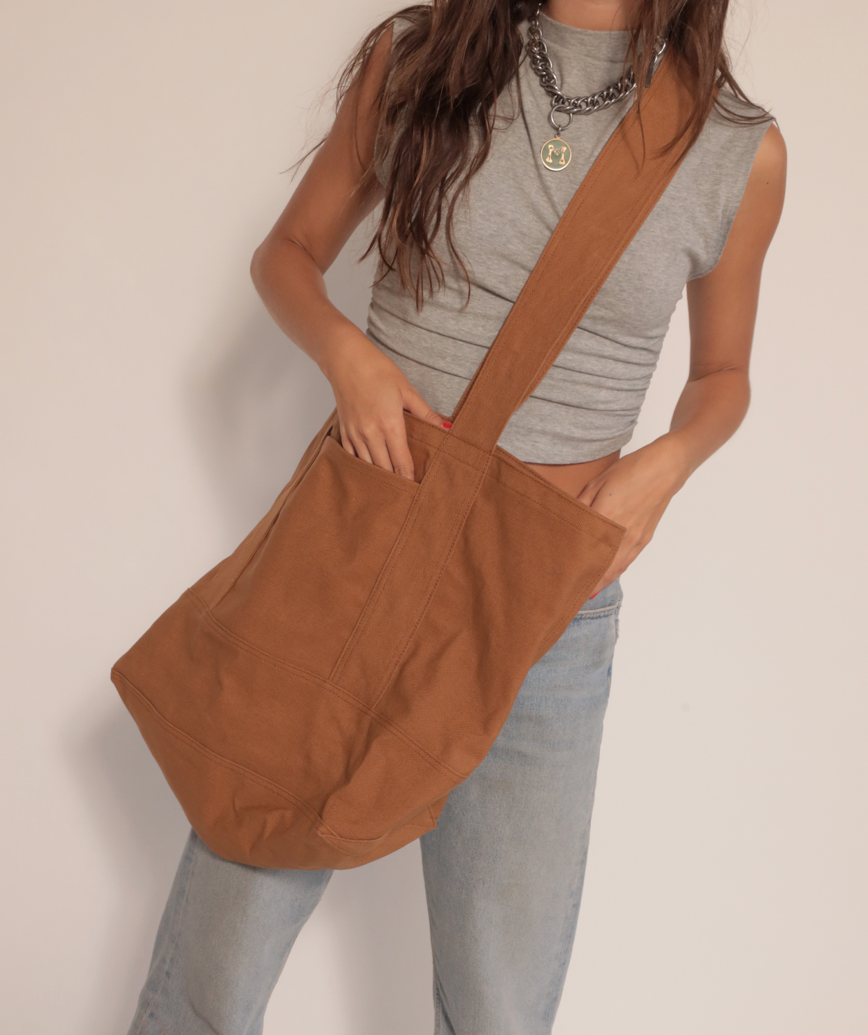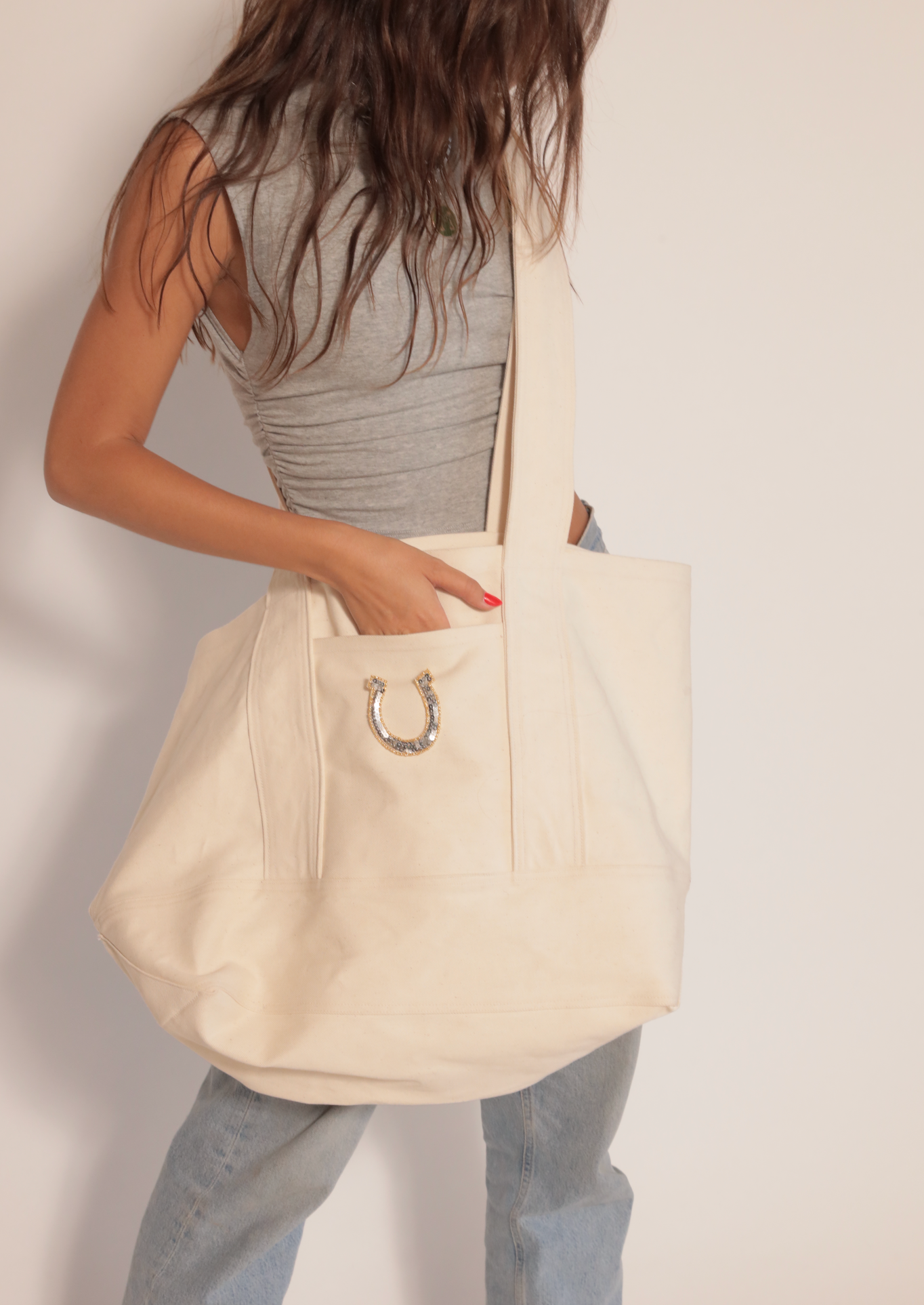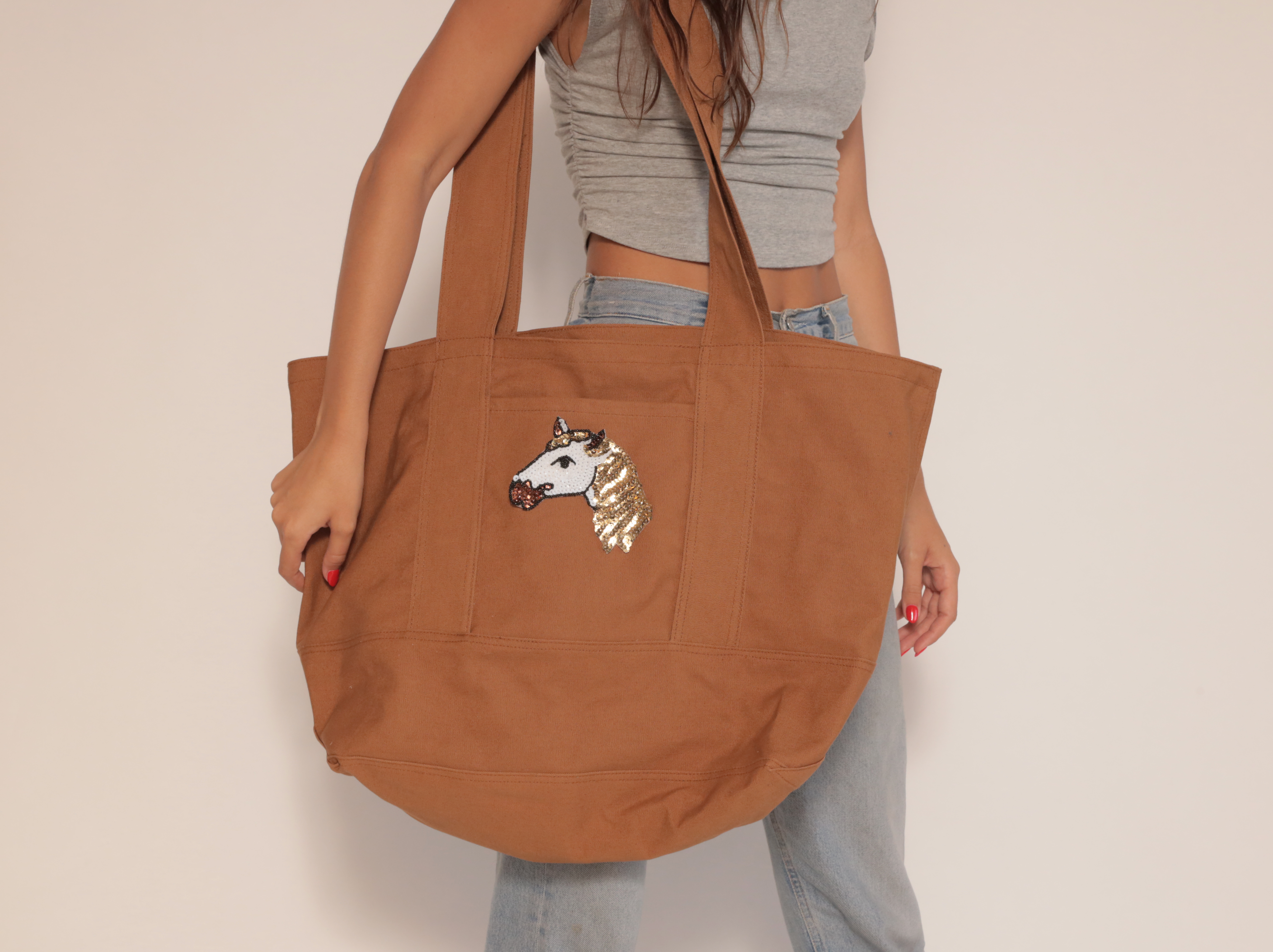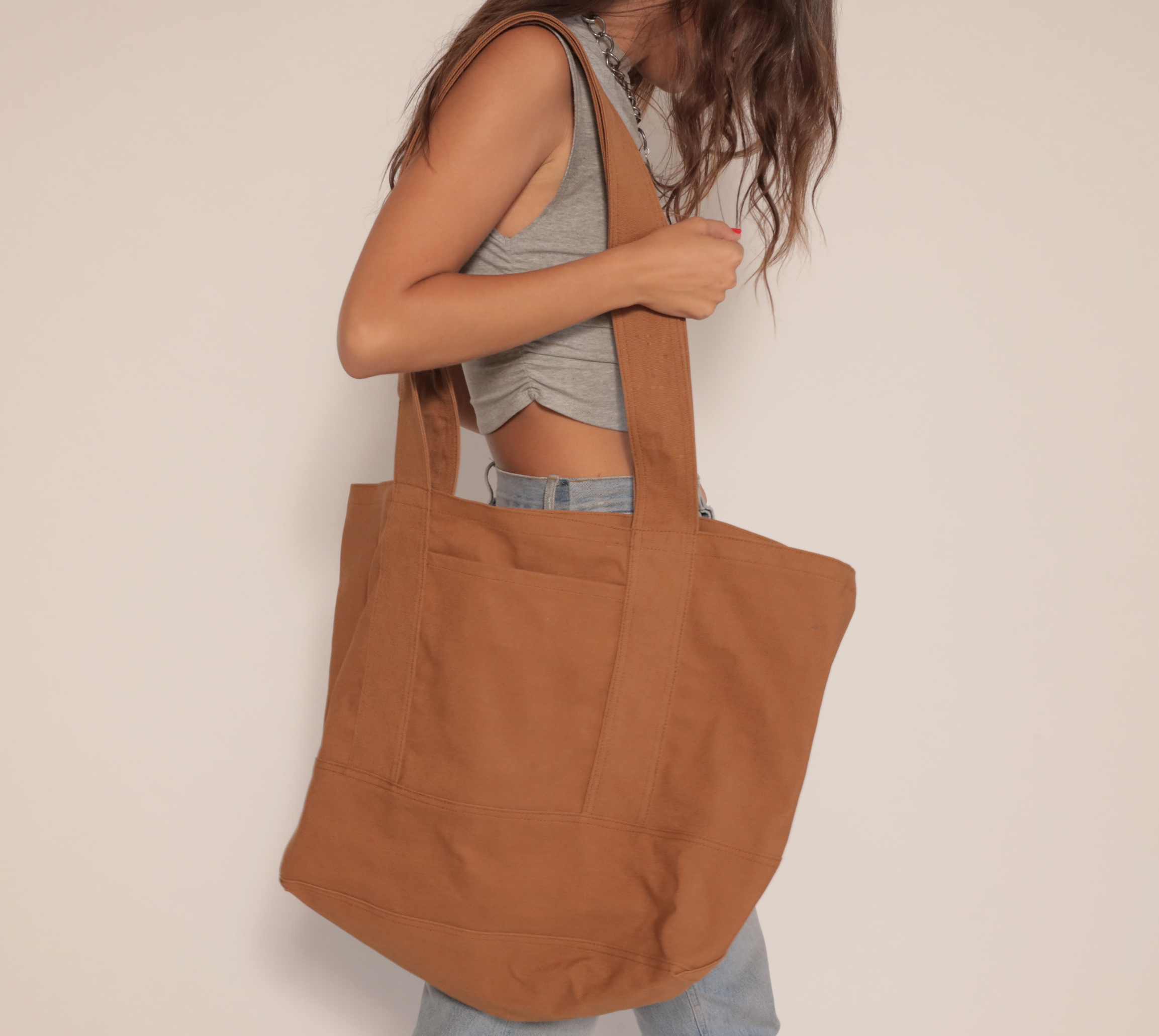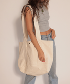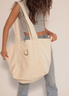 We are so excited to share this tote with you! This oversized Canvas tote is sturdy enough to carry any and all things. With wide straps it wont cut into your shoulder and can be worn over the shoulder or cross body.
