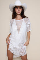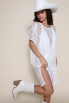 Square knit woven T dress with embroidered sequin and a loss/oversized fit.