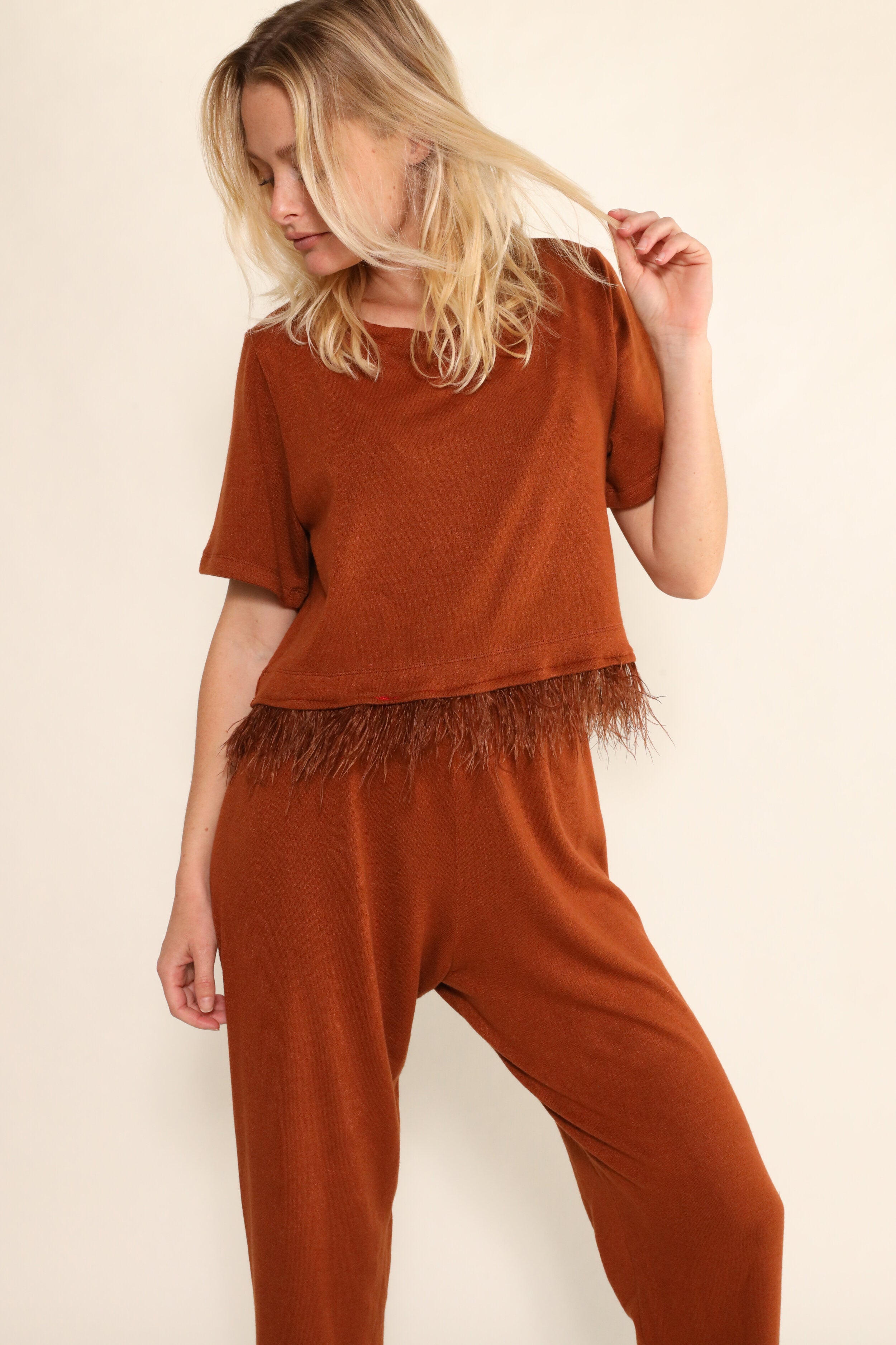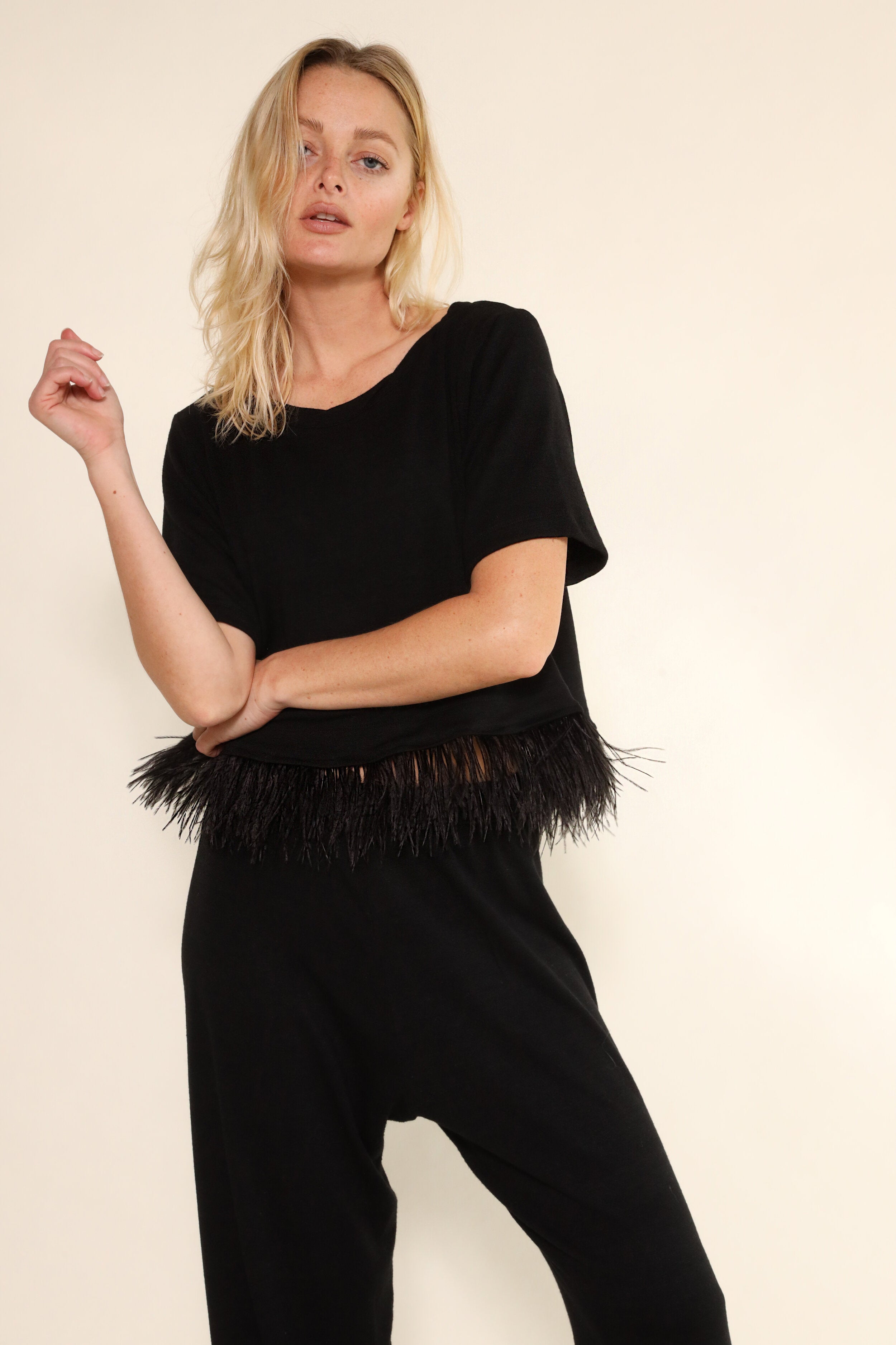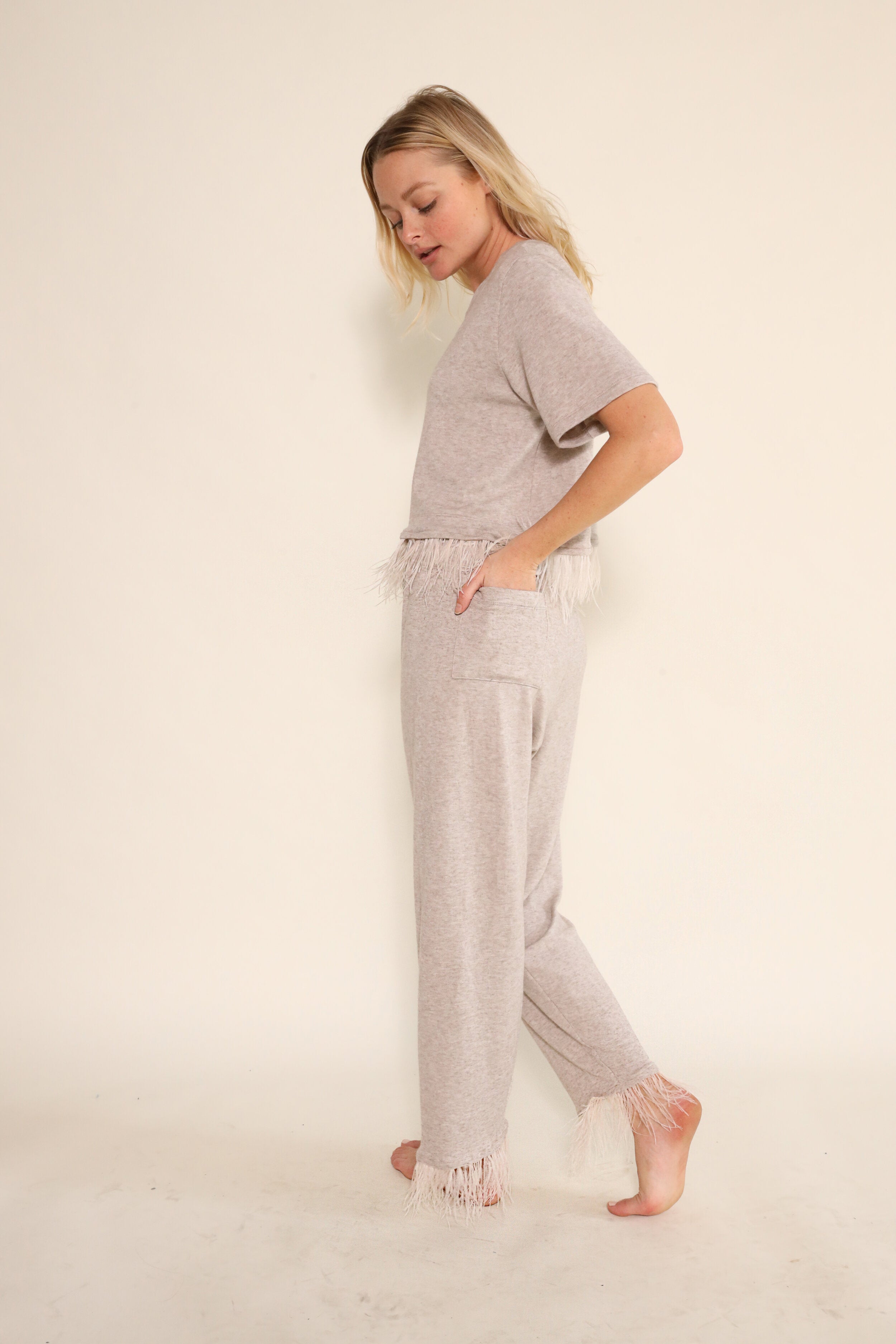Fabric: Soft Velvet Cashmere, faux feather trim
