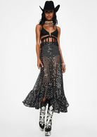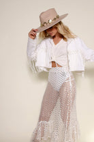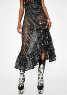 High Waisted Sheer skirt with shark tooth hem and ruffle detail