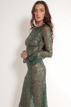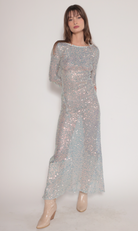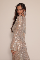 Our Maxine Dress is a stunner. Made in our ultra wearable, light stretch sequin net fabric this dress forms to your body creating a sexy, flattering silhouette.