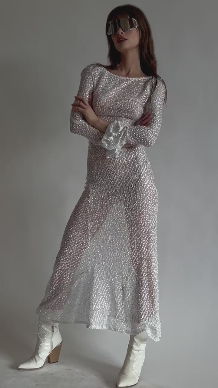 Wear this for bachelorette parties, your engagement party, or any special occasion. This beauty is also perfect for a summertime rooftop dinner. She sparkles like the ocean at sunset.