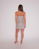 True revenge needs no words. Our Revenge Mini Dress is a tube dress made with our solid sequin fabric. Lightly stretchy and soft on the skin. Perfect for bachelorette parties and a romantic honeymoon dinner outfit. Unlined. Slip on. Elastic band at the top.