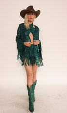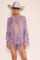 One Piece Bodysuit with monochromatic sparkle sequin fringe.