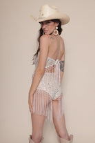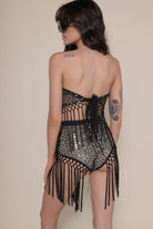 Mirrored Sequin Bandana Tie Top with macrame fringe trim