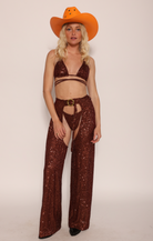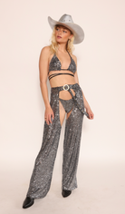 Our beloved chaps now available in our sequin net fabric. These feel soft and barely there. Light stretch for comfort. Adjustable at the waist and the backside waist band has a bit of extra stretch for the perfect fit. Go ahead and show off those ASSets.